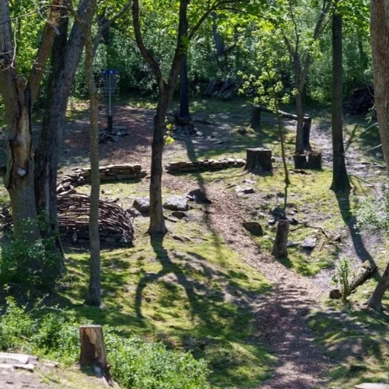 Course is designed to provide fun for all ages and skill levels, requiring different kinds of shots via doglegs, elevation, and obstacles for fun and learning/ developing skill at the game-- without risk of losing any discs